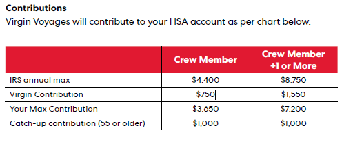 The IRS maximum for 2025 is $4,400 for Crew member only and $8,750 for Crew Member + 1 or more. If you are age 55 or older, you may contribute an additional $1,000 annually in catch up contributions.